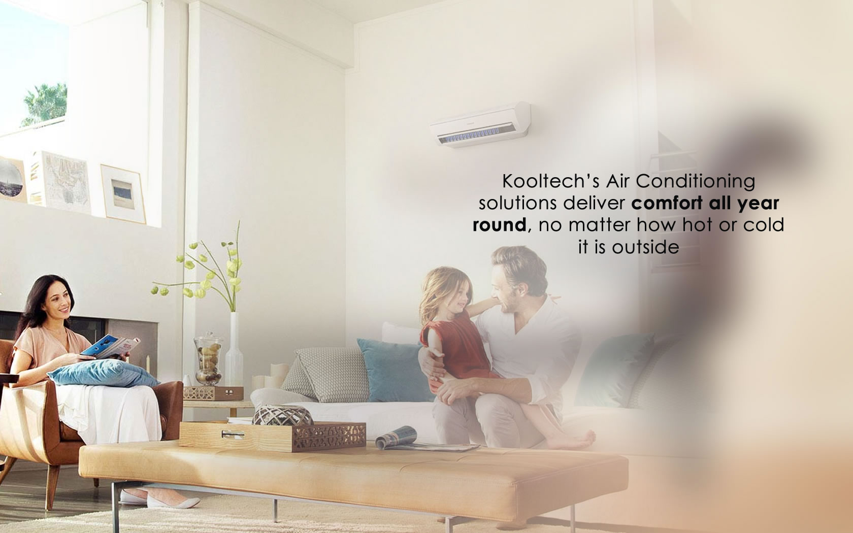 Kooltech’s Air Conditioning solutions deliver comfort all year round, no matter how hot or cold it is outside. Kooltech creates a flawless indoor climate while heightening energy efficiency.